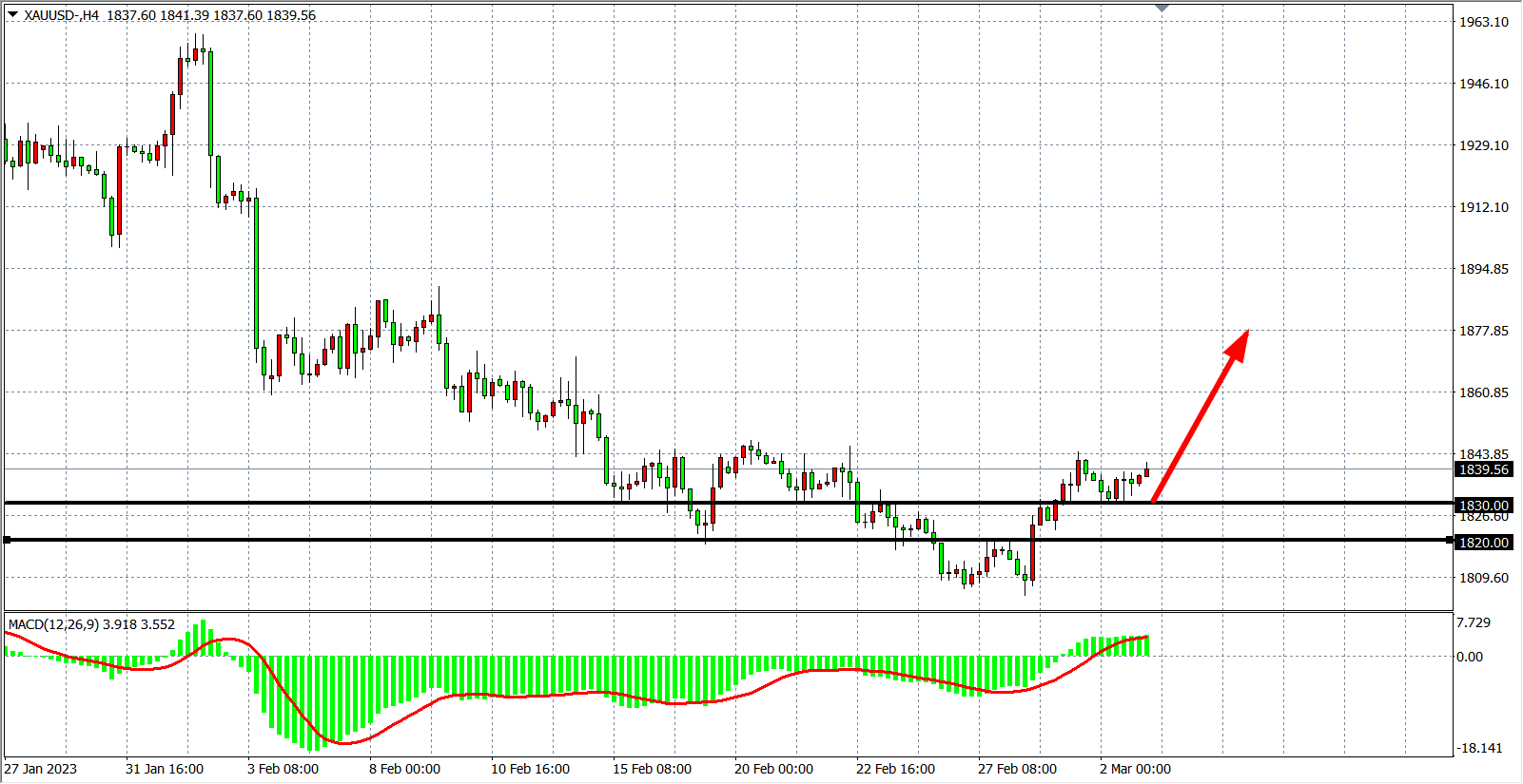 交易策略:在1830.00 之上看涨,目标1850.00         1860.00