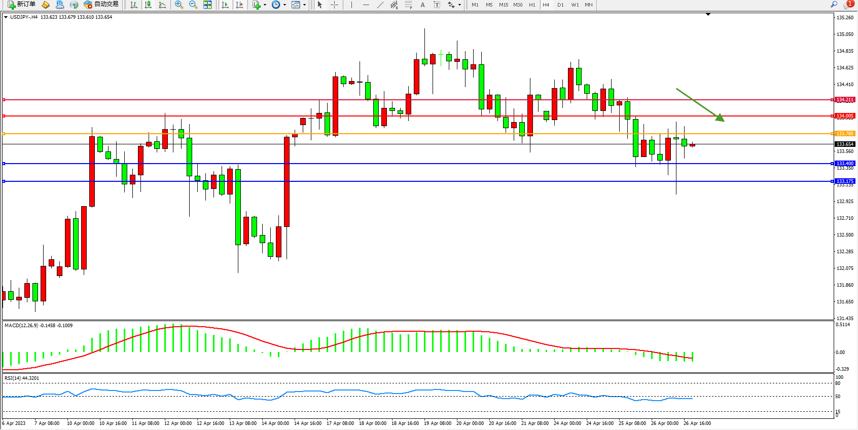 交易策略:133.780下方看跌,目标133.400 133.175