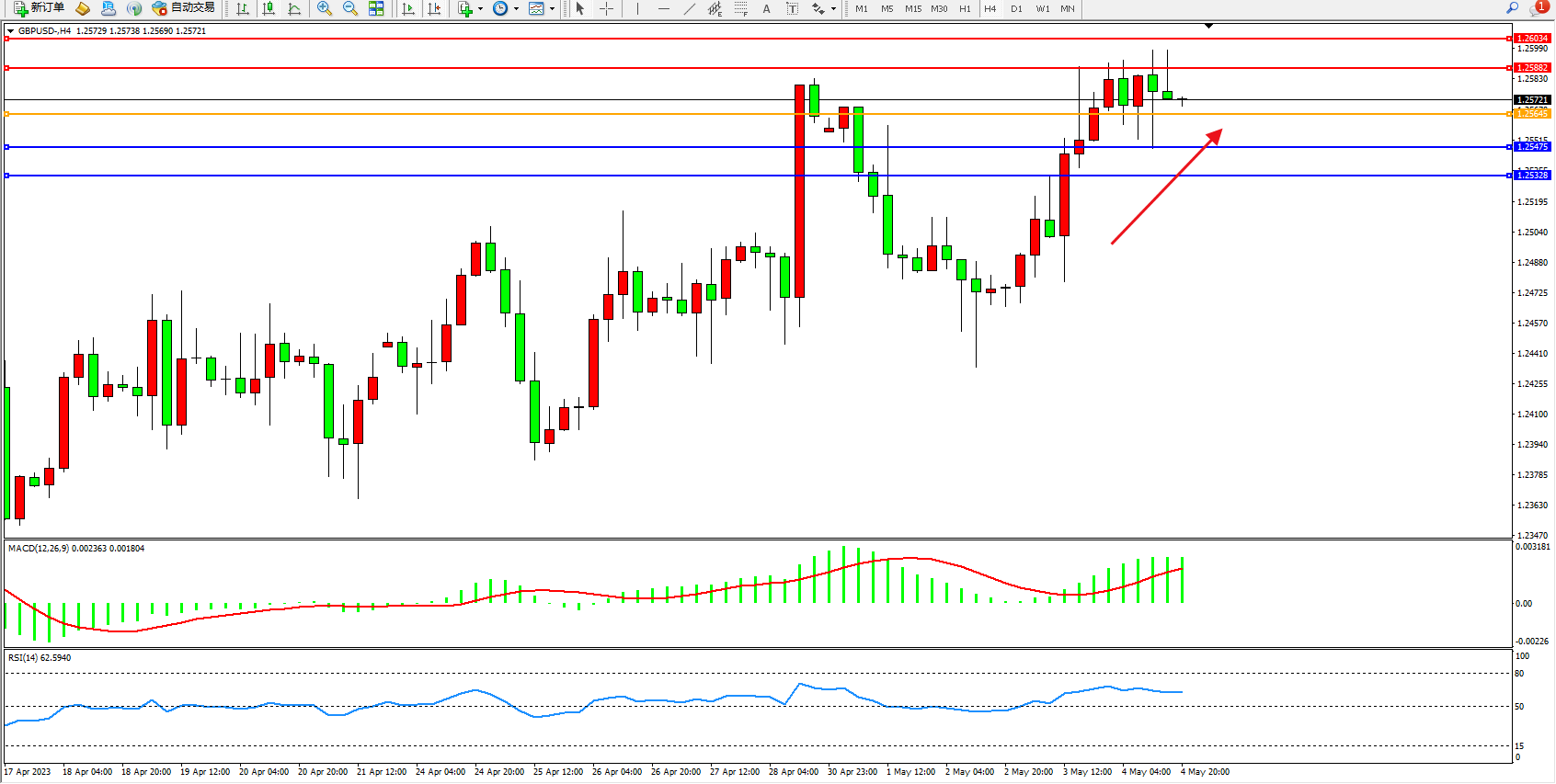 英镑美元GBPUSD ——4小时K线图显示: