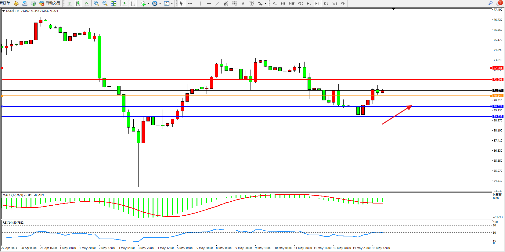 原油USOil——4小时K线图显示: