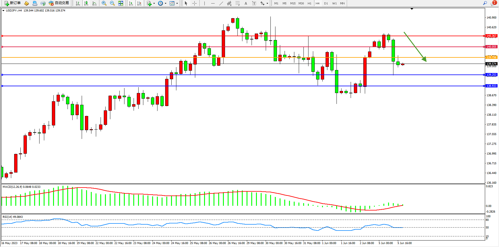 美元兑日圆维持139.756附近震荡,支持日圆的最佳方法是日本央行要改变其货币政策,然而日本央行目前离这样做似乎还有很长的路要走。目前若要日圆回强,似乎也只能冀望美联储6月份率先按下加息停止键了。