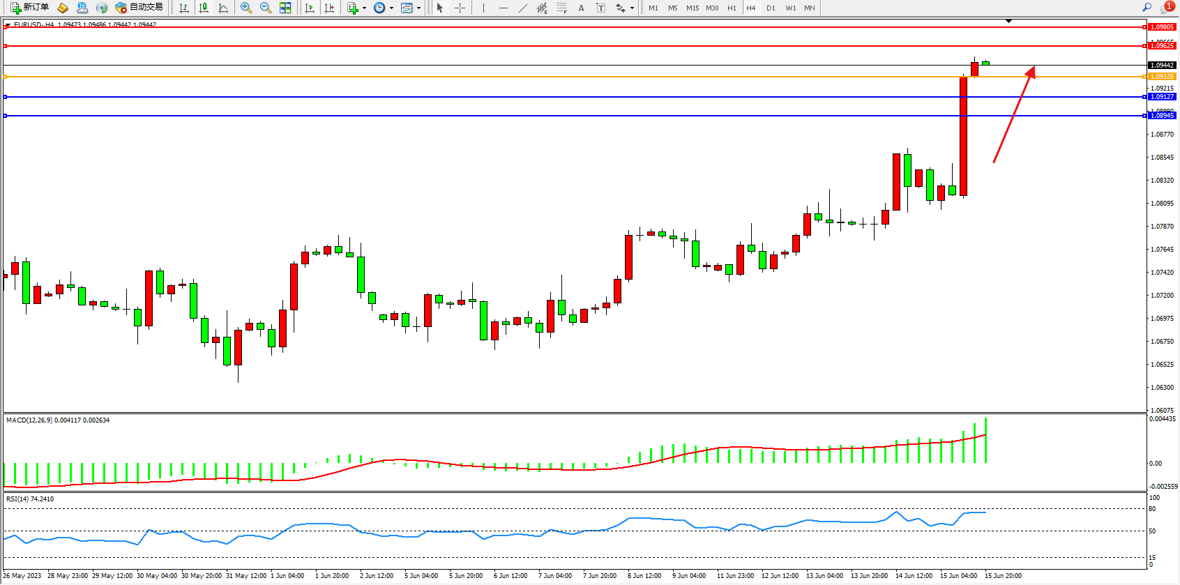 欧元兑美元维持1.09442附近震荡,欧洲央行将三大主要利率均上调25个基点,符合市场预期,利率达2008年10月金融危机紧急降息前的最高水平。