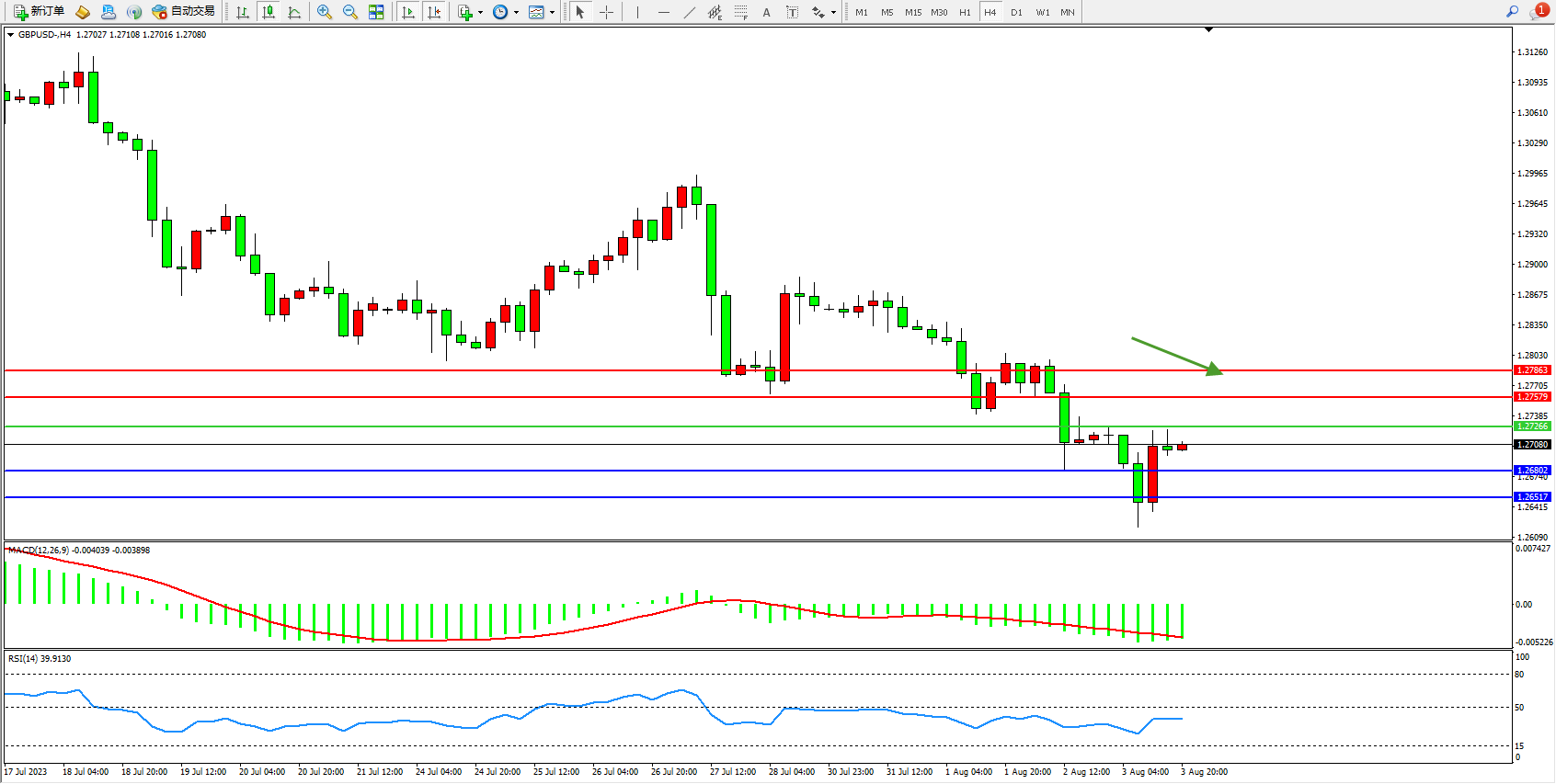 英镑美元GBPUSD ——4小时K线图显示: