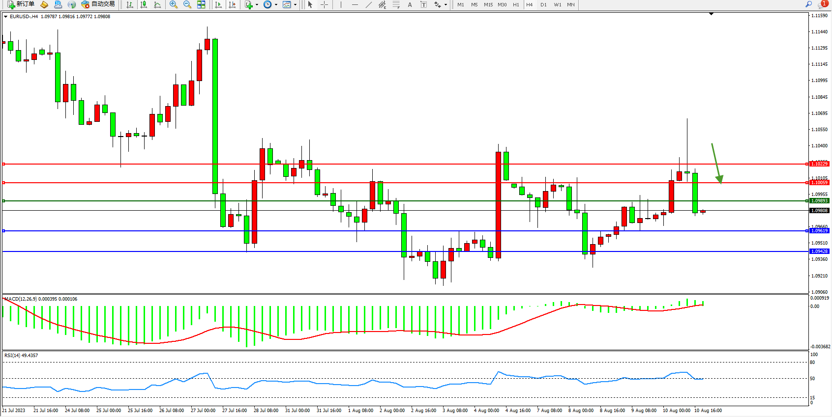 备选策略:1.09893上方看涨,目标1.10059 1.10229