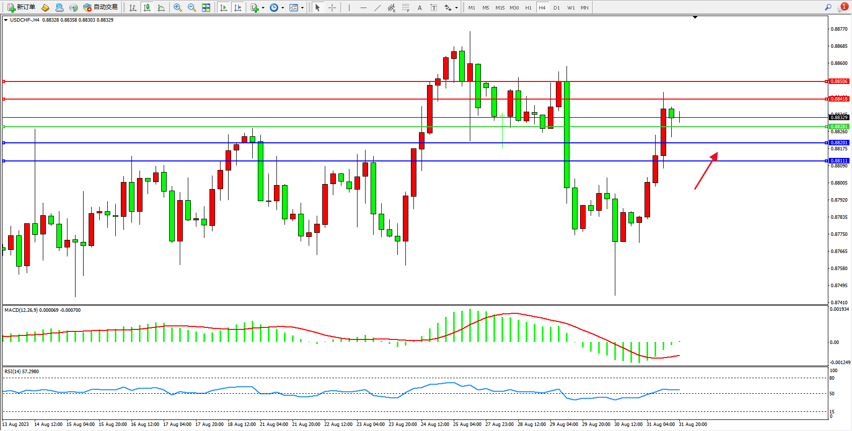 备选策略:0.88281上方看涨,目标0.88201 0.88111