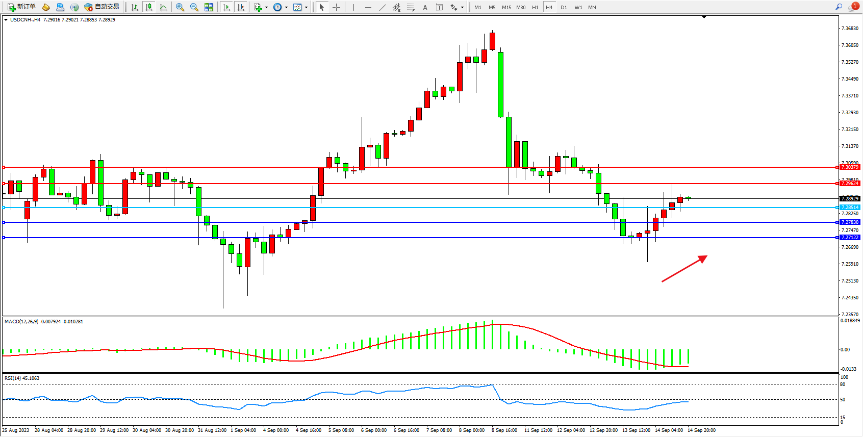 USDCNH:低位上扬 USDCNH  HKDCNH