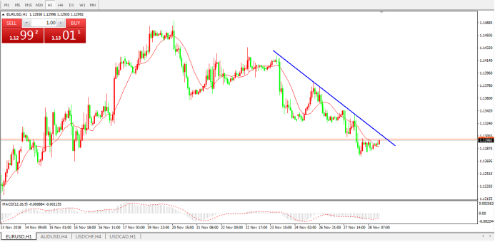欧元美元EURUSD1小时图: