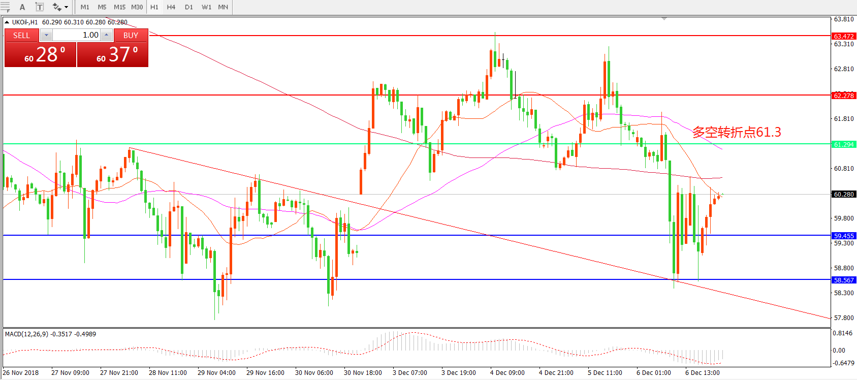 多空转折点:61.30