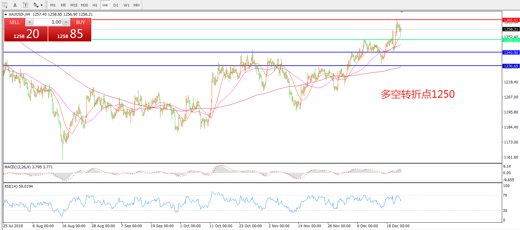 多空转折点:1250.00