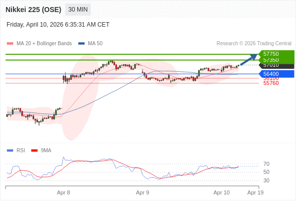 在 56400 之上,看涨,目标价位为 57350 ,然后为 57750 。