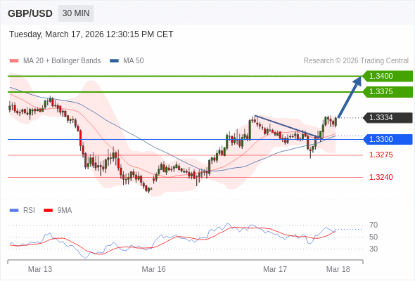 在 1.3300 之上,看涨,目标价位为 1.3375 ,然后为 1.3400 。