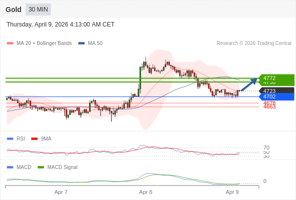 Gold 当日内: 有上涨的可能,目标价位定在 4772 。