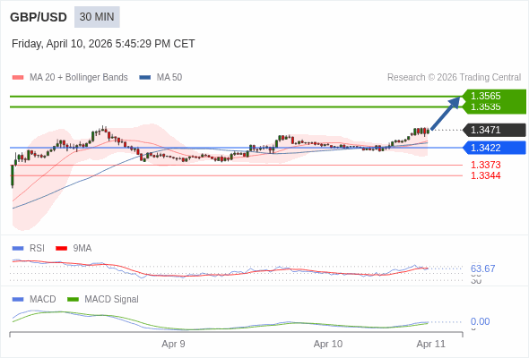 替代方案: 在1.3422以下,期待1.3373和1.3344。