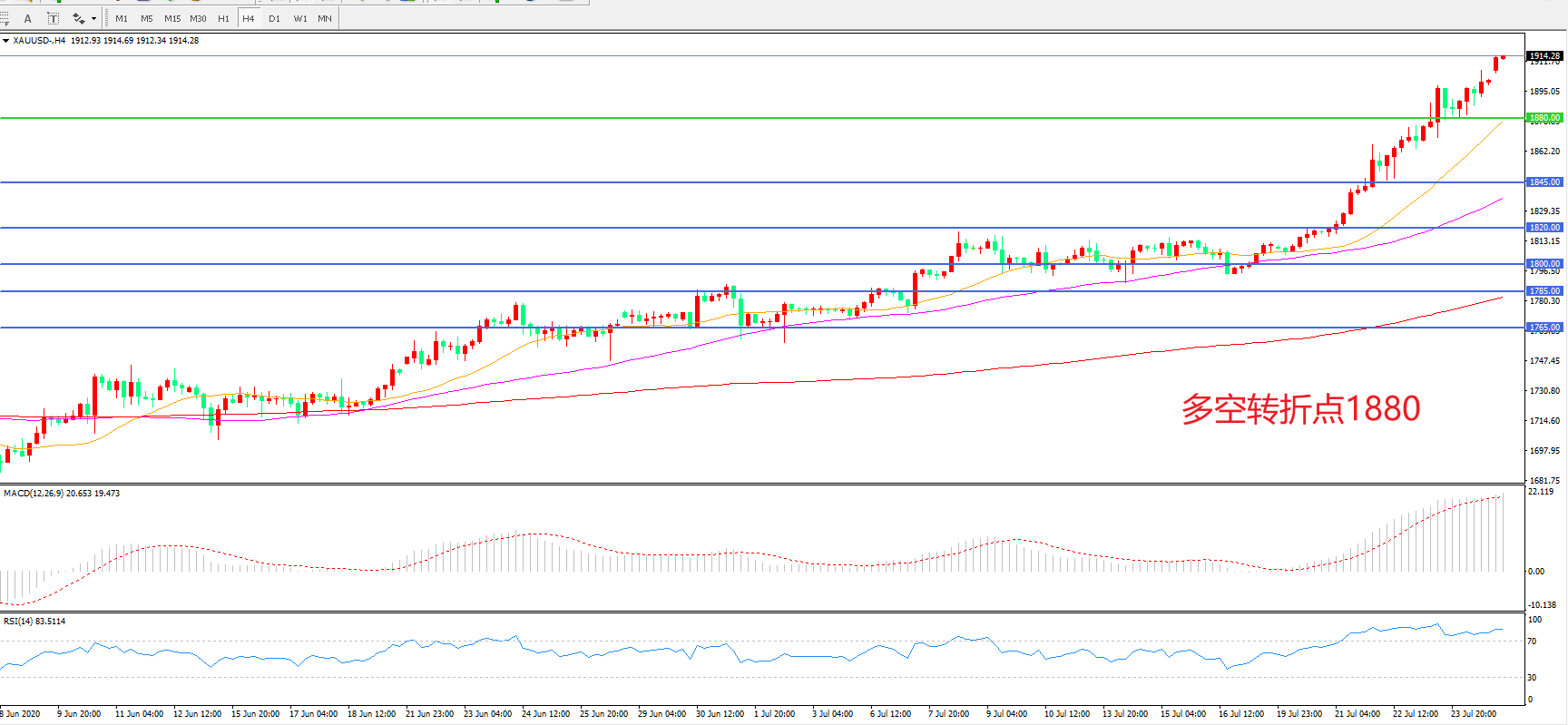 交易策略:在1880.00之上看涨,目标1920.00   1950.00