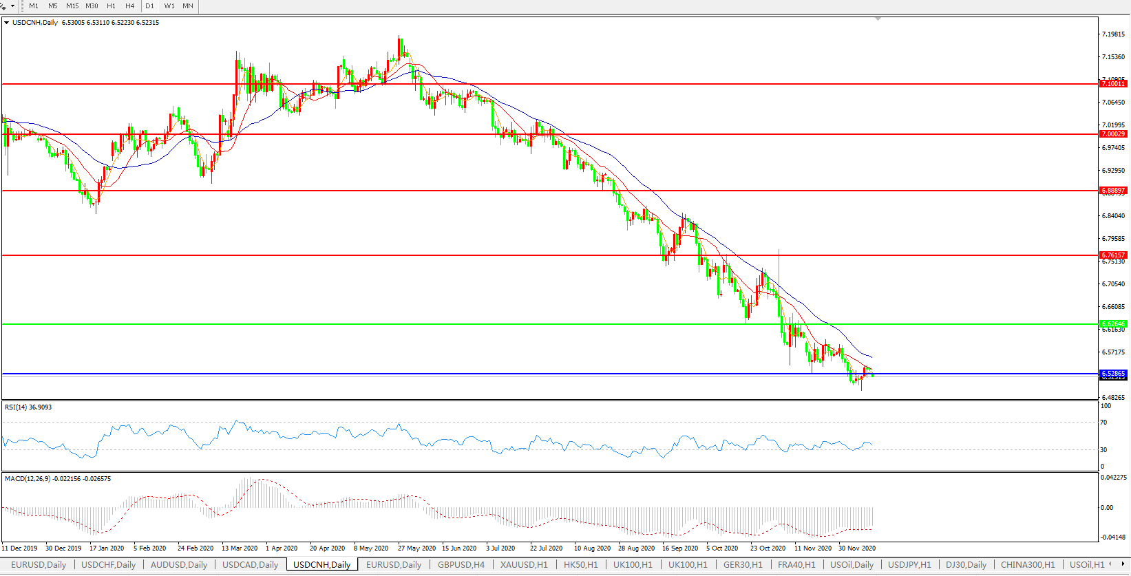 美元兑人民币USDCNH    日线图: