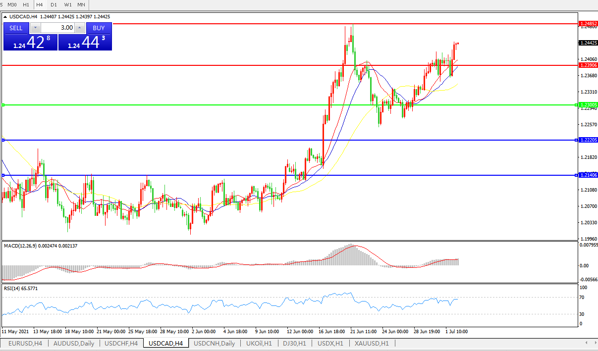 美元兑加元USDCAD 4小时图: