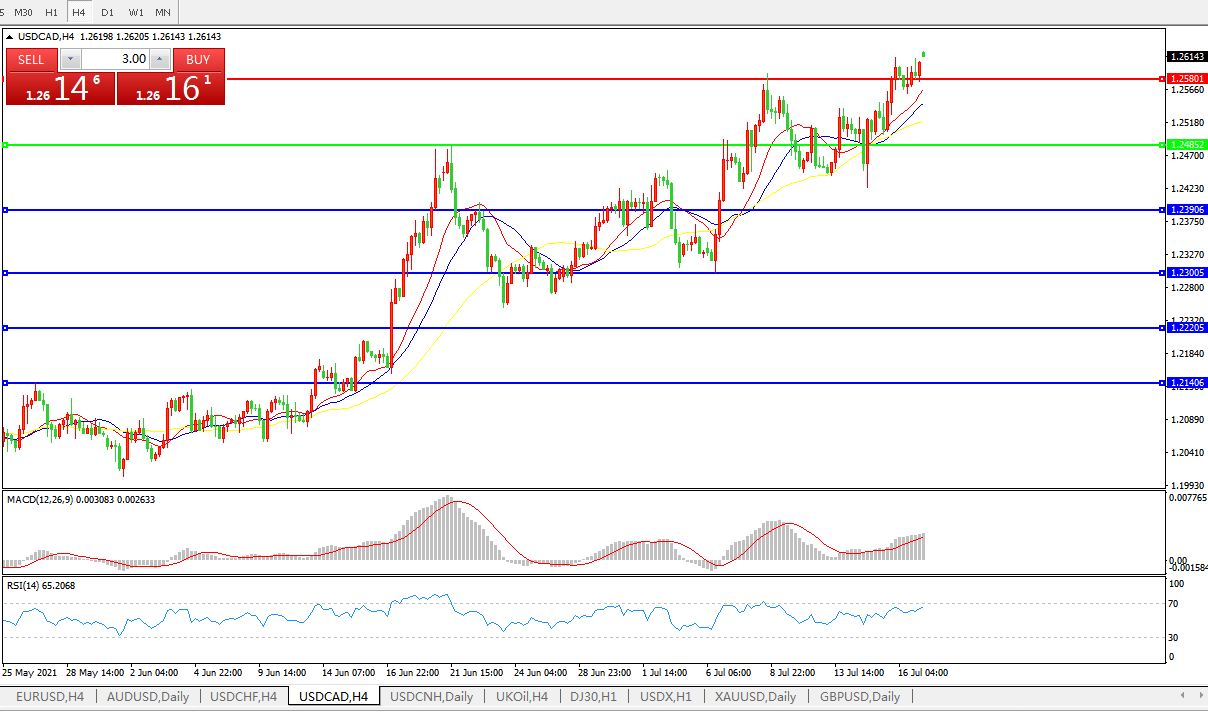 美元兑加元USDCAD    4小时图: