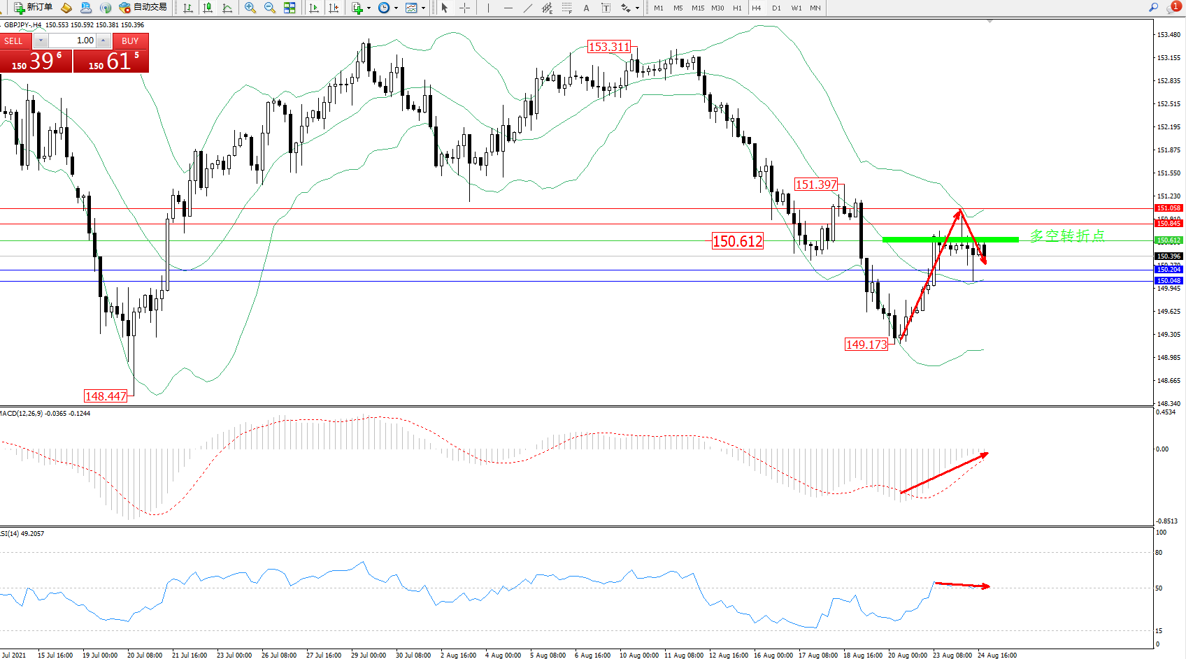 交易策略:150.612下方看跌,目标150.204、150.048