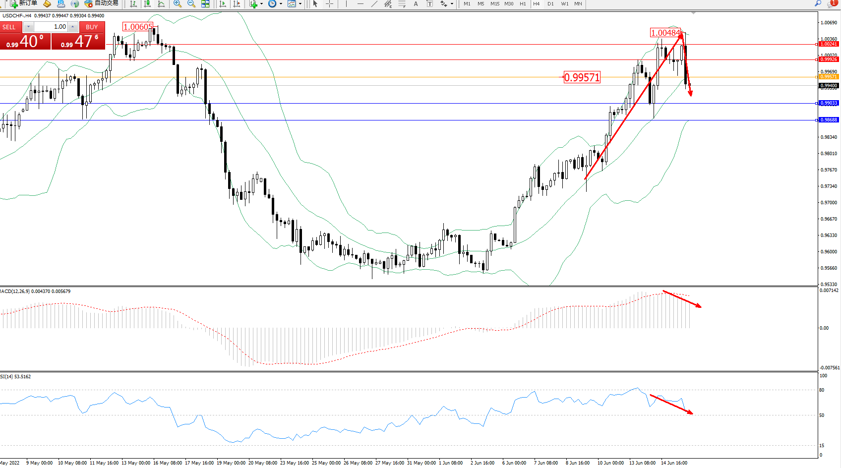 美元瑞郎USDCHF——4小时K线图显示: