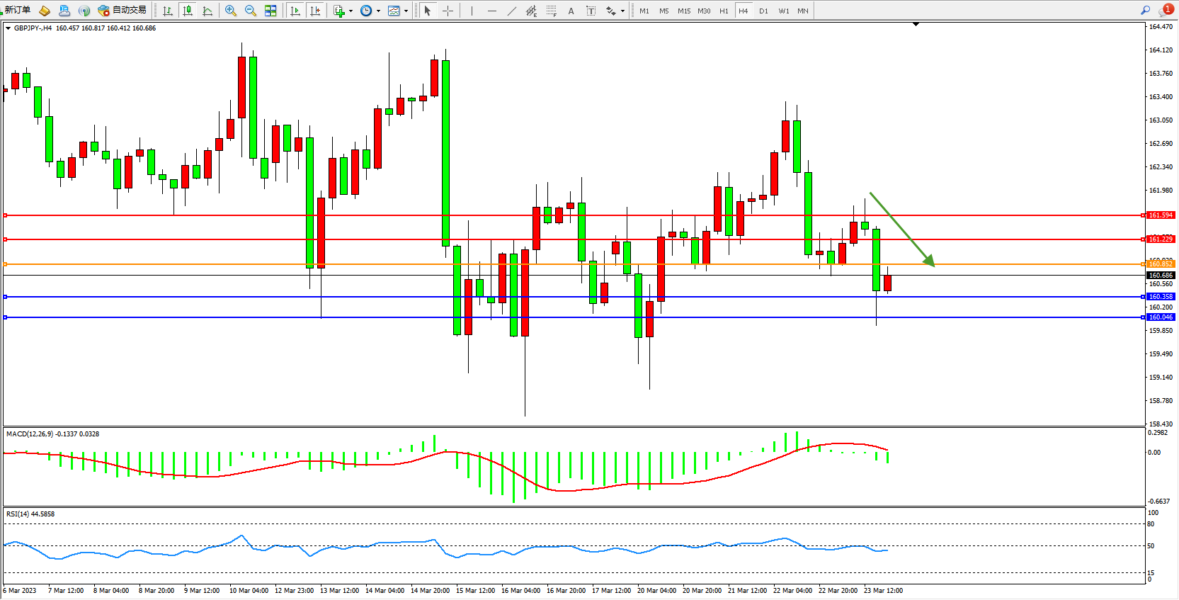 交易策略:160.852下方看跌,目标160.358  160.046