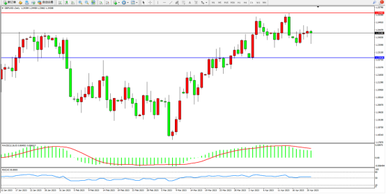 高位短期宽幅震荡走势持续,市场尚未走出最终方向指引,上方压制关注1.25465附近,低位支撑关注1.22838附近,MACD指针处于多头区域平缓整理,RSI指标处于50均衡在线侧徘徊;如图:
